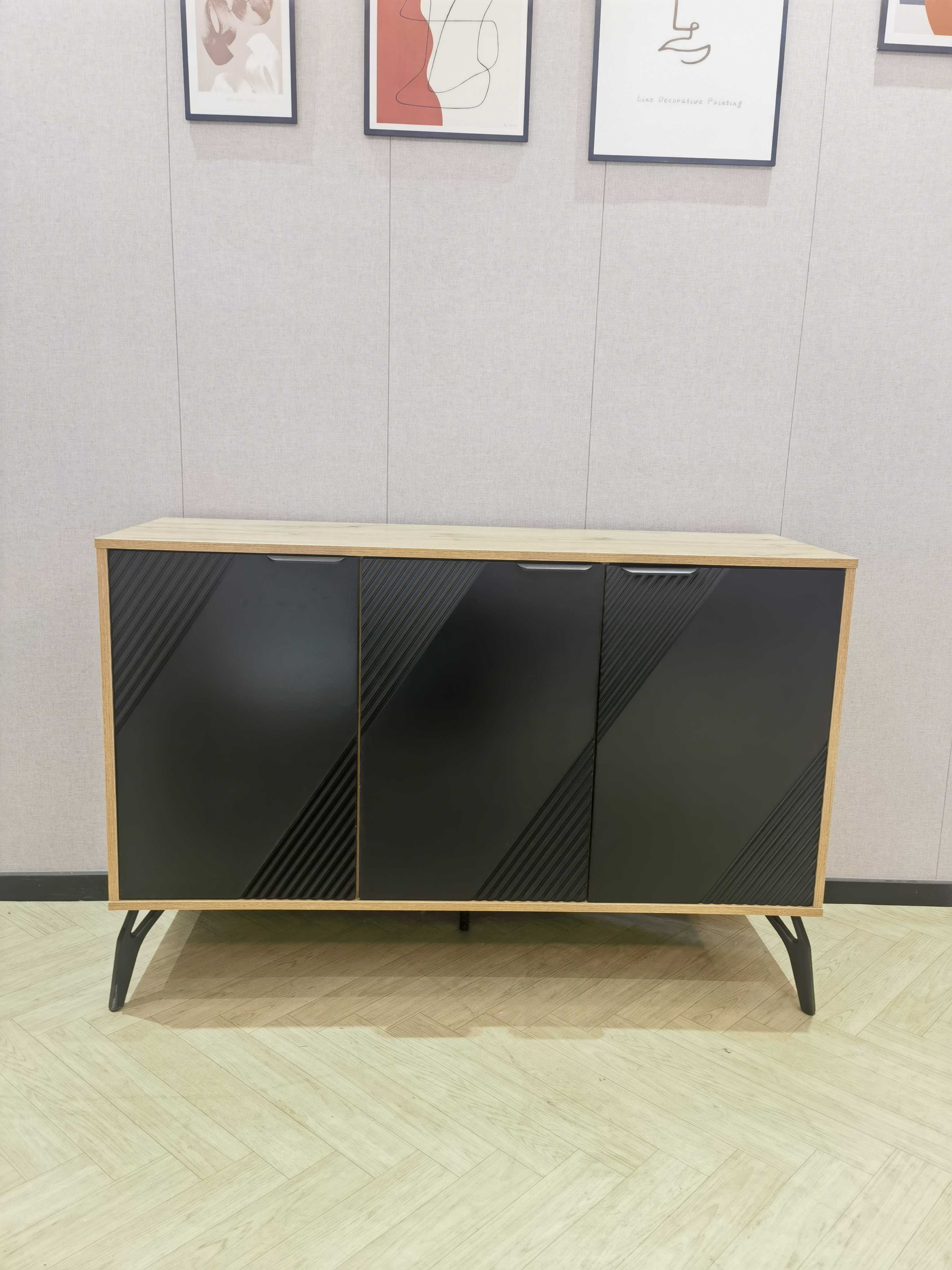 Ningde Yibang Furniture Manufacturing Co., Ltd.'s Modern Geometric Texture Three-Door Sideboard is a premium piece crafted for users who seek both design aesthetics and robust storage functionality. It masterfully blends distinctive geometric patterns, bold color contrasts, and spacious storage compartments, making it an ideal focal point for modern living rooms or dining areas.